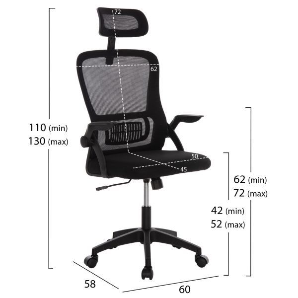ΚΑΡΕΚΛΑ ΓΡΑΦΕΙΟΥ BASTON HM18236.01 ΜΑΥΡΟ MESH & PP ΣΚΕΛΕΤΟΣ 64x60x117-127Υεκ. 1τμχ
