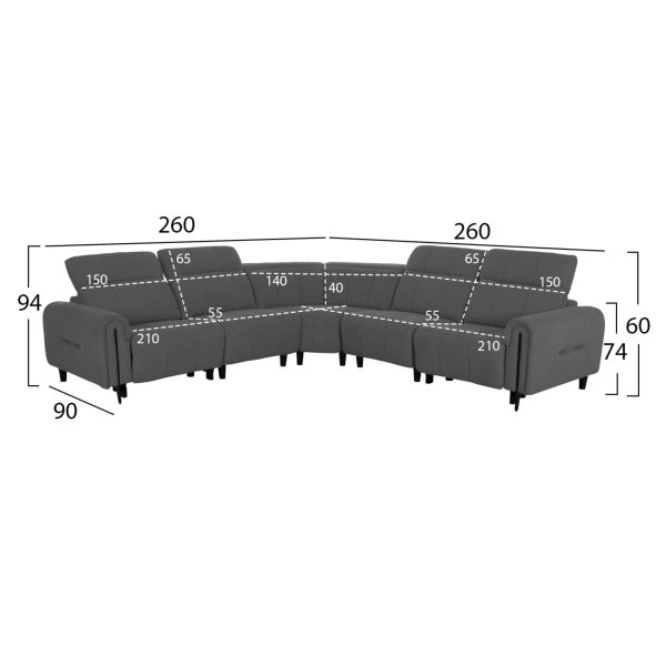 ΓΩΝΙΑΚΟΣ ΚΑΝΑΠΕΣ ΜΕ RECLINE ORACLE HM3290.01 ΓΚΡΙ ΥΦΑΣΜΑ 260x260x90(κάθισμα)x94Υεκ. 1τμχ