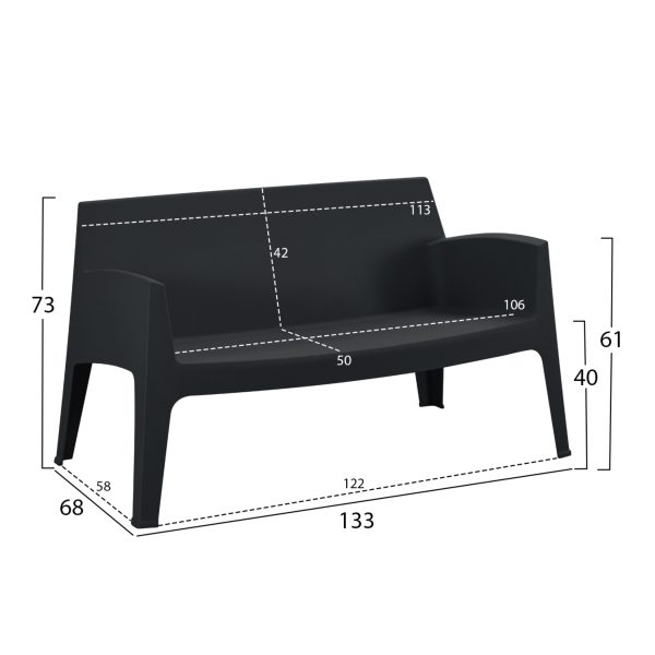 ΚΑΝΑΠΕΣ 2-ΘΕΣΙΟΣ ΠΟΛΥΠΡΟΠΥΛΕΝΙΟΥ SLEEK HM6366.02 ΧΡΩΜΑ ΜΑΥΡΟ 133x68x73Υεκ. 1τμχ