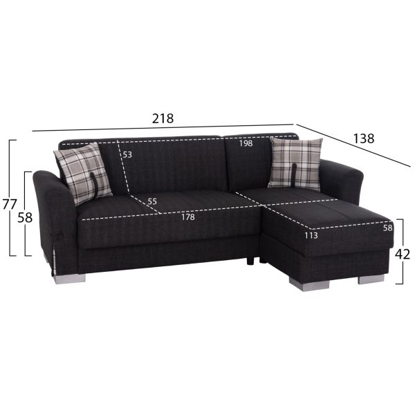 ΓΩΝΙΑΚΟΣ ΚΑΝΑΠΕΣ-ΚΡΕΒΑΤΙ ΜΕ ΑΠΟΘ. ΧΩΡΟ BRONKO HM3291.01 ΑΝΘΡΑΚΙ ΥΦΑΣΜΑ 218x138x77Y 1τμχ