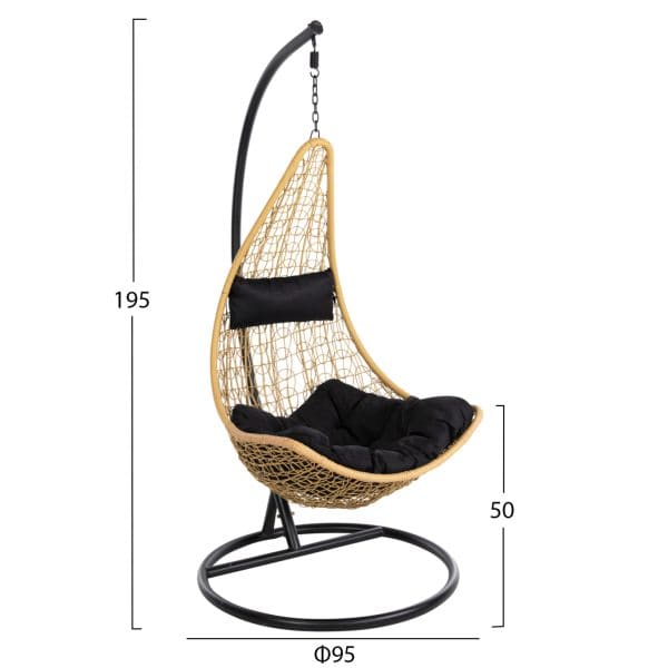 ΚΡΕΜΑΣΤΗ ΦΩΛΙΑ NESTA HM6468.05 ΜΑΥΡΟ ΜΕΤΑΛΛΟ–ΚΑΦΕ P.E.RATTAN 100x100x190Υεκ. 1τμχ