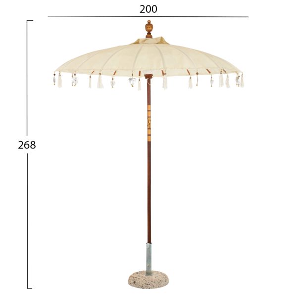 ΟΜΠΡΕΛΑ ΜΠΑΛΙΝΕΖΙΚΗ ΜΑΚΡΑΜΕ ΜΠΕΖ ΞΥΛO TEAK Φ200X250εκ. HM6035.01 1τμχ