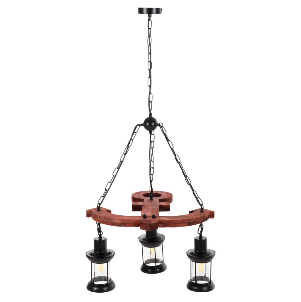 Ανακαλύψτε το εντυπωσιακό 3-φωτο φωτιστικό οροφής HM4115. Ένα φωτιστικό που θα αποτελέσει το κέντρο του ενδιαφέροντος χάρη στο εντυπωσιακό και εμπνευσμένο του design. Τα 3 φαναράκια που περιέχουν τους λαμπτήρες κρέμονται από μια ξύλινη άγκυρα, η οποία με την σειρά της κρέμεται από την οροφή με αλυσίδες.