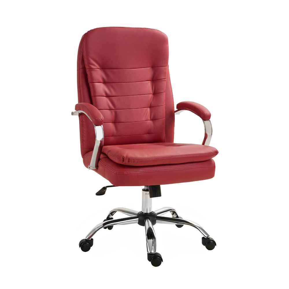 Η Adelina είναι μία καρέκλα γραφείου η οποία διαθέτει εξαιρετικά αναπαυτικό κάθισμα και είναι ιδιαίτερης αντοχής. Είναι επενδεδυμένη με υψηλής ποιότητας τεχνόδερμα PU σε μπορντό χρώμα, διαθέτει μεταλλική βάση χρωμίου και επενδεδυμένα μπράτσα. Επιπλέον είναι εξοπλισμένη με μηχανισμό ρύθμισης relax καθώς και αμορτισέρ ρύθμισης ύψους. Τα τεχνικά χαρακτηριστικά της και το εργονομικό design της καθιστούν την Adelina ιδανική για καθημερινή οικιακή ή/και επαγγελματική χρήση.