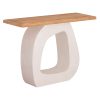Η χειροποίητη κονσόλα αυτή διαθέτει ορθογώνια επιφάνεια από ξύλο ελάτου σε ΦΥΣΙΚΟ χρώμα, και μια βάση με όμορφο ακανόνιστο design σε ΥΠΟΛΕΥΚΟ χρώμα από MDF με υφή σαγρέ τσιμέντου, που αποτελεί την πιο σύγχρονη τάση στον τομέα του interior design. Τι είναι όμως η κονσόλα; Η κονσόλα είναι ένα κομψό έπιπλο που μπορεί να τοποθετηθεί σε σχεδόν οποιοδήποτε δωμάτιο ή χώρο. Με μια κονσόλα, ο σχεδιασμός του χώρου γίνεται εκλεπτυσμένος, κομψός, και πλήρως σκεπτόμενος. Μπορεί να χρησιμοποιηθεί τόσο ως μέρος ενός σετ με πολλά στοιχεία, όσο και ανεξάρτητα και επιλέγεται για τον γενικό σχεδιασμό του χώρου. Ενδεικνυται για μια “νησιωτικού” στυλ διακόσμηση!