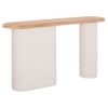 Η κονσόλα SANTORINI αποτελεί ένα ιδιαίτερο κομμάτι σύγχρονου design που ισορροπεί ανάμεσα στη φυσική αισθητική και τη μοντέρνα αρχιτεκτονική φόρμα. Η οβάλ επιφάνειά της σε συνδυασμό με τις δύο βάσεις διαφορετικού σχήματος δημιουργούν μια δυναμική, γλυπτική παρουσία που ξεχωρίζει σε κάθε χώρο. Η φυσική απόχρωση του ξύλου έλατου και η υπόλευκη σαγρέ υφή των ποδιών δημιουργούν έναν κομψό συνδυασμό που θυμίζει minimal μεσογειακή αισθητική.
