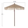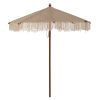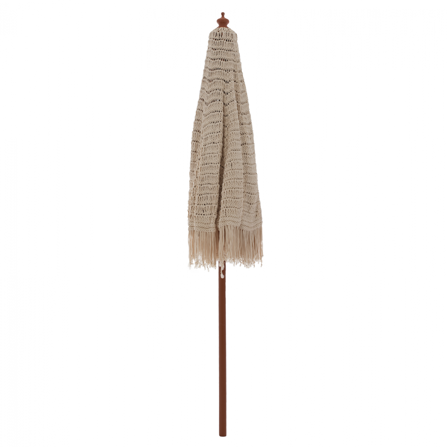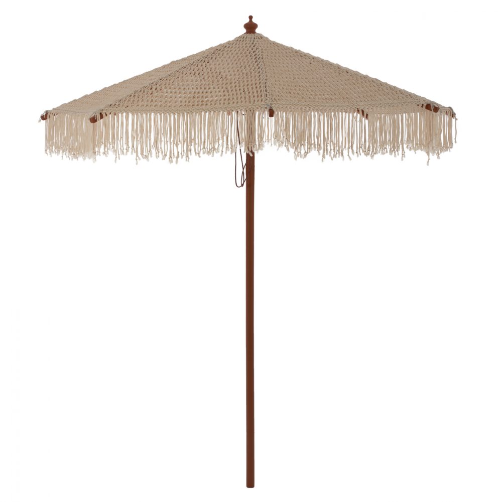 Ομπρέλα Φ2,30μ. με ξύλινο σκελετό, 8 ακτίνες και διπλή τροχαλία, με πλέξη ΜΑΚΡΑΜΕ, σε μπεζ απόχρωση.