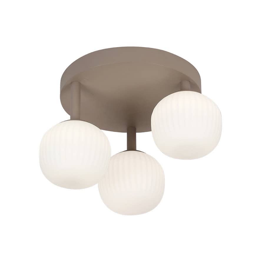 3φωτο φωτιστικό οροφής πλαφονιέρα σε χρώμα Sand Brown και opal γυαλιά. Ύψος: 28 εκ. Διάμετρος: 44 εκ. Τύπος Λαμπτήρα: Led Watt: 18W Lumen: 2160 lm Θερμοκρασία Χρώματος: 3000K Dimmable: ΌχιΜεταφορικά