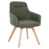 Το πολυθρονάκι DEW είναι μια πανέμορφη επιλογή για την τραπεζαρία σας. Η πλάτη είναι μεσαίου ύψους ενώ το κάθισμα είναι αναπαυτικό. Η πλάτη και το κάθισμα είναι επενδυμένα με ποιοτικό ύφασμα σε ΠΡΑΣΙΝΟ χρώμα, ενώ τα μπράτσα αλλά και το πίσω μέρος της πλάτης έχουν επένδυση από PU, επίσης σε ΠΡΑΣΙΝΟ χρώμα. Η στήριξη γίνεται με μια βάση και 4 πόδια από ξύλο οξιάς σε ΦΥΣΙΚΟ χρώμα.