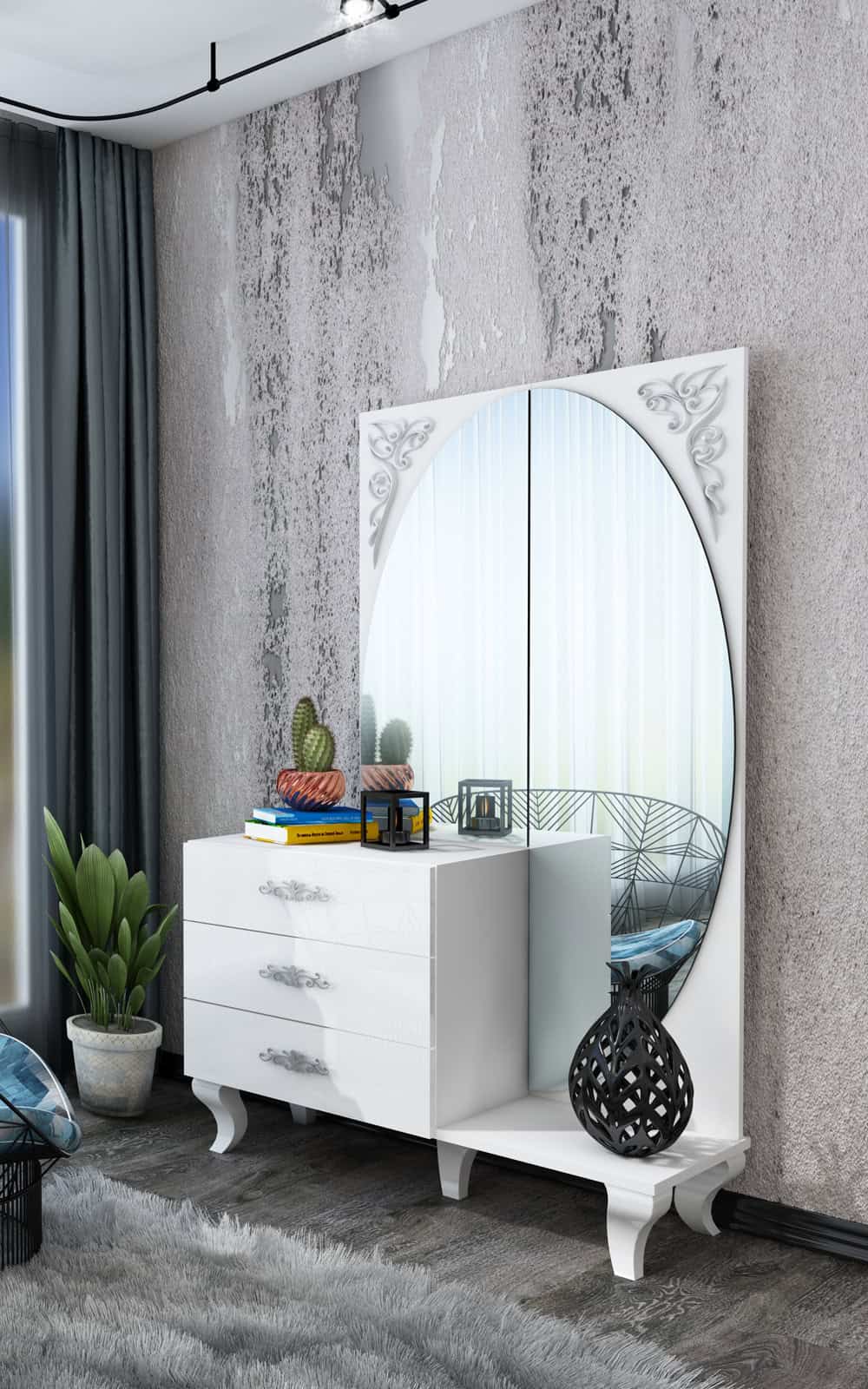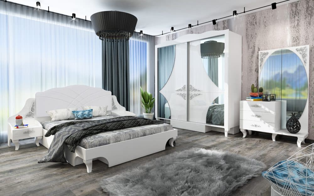 Το σετ κρεβατοκάμαρας Belissima είναι το κατάλληλο για ανθρώπους με ιδιαίτερο γούστο! Διαθέτει λευκά στολίδια και ξεχωριστό στυλ, για να εντυπωσιάζετε όποιον την αντικρύζει! Περιλαμβάνει 1 κρεβάτι, 2 κομοδίνα, 1 ντουλάπα και 1 συρταριέρα με καθρέφτη.