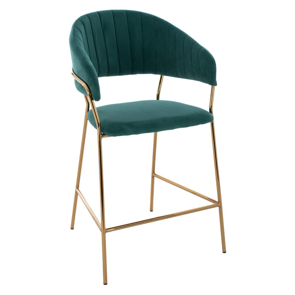 Σκαμπό μεσαίου ύψους Theodore, από βελούδινο ύφασμα σε κυπαρισσί με επίχρυσο σκελετό 60x55x100 εκ.