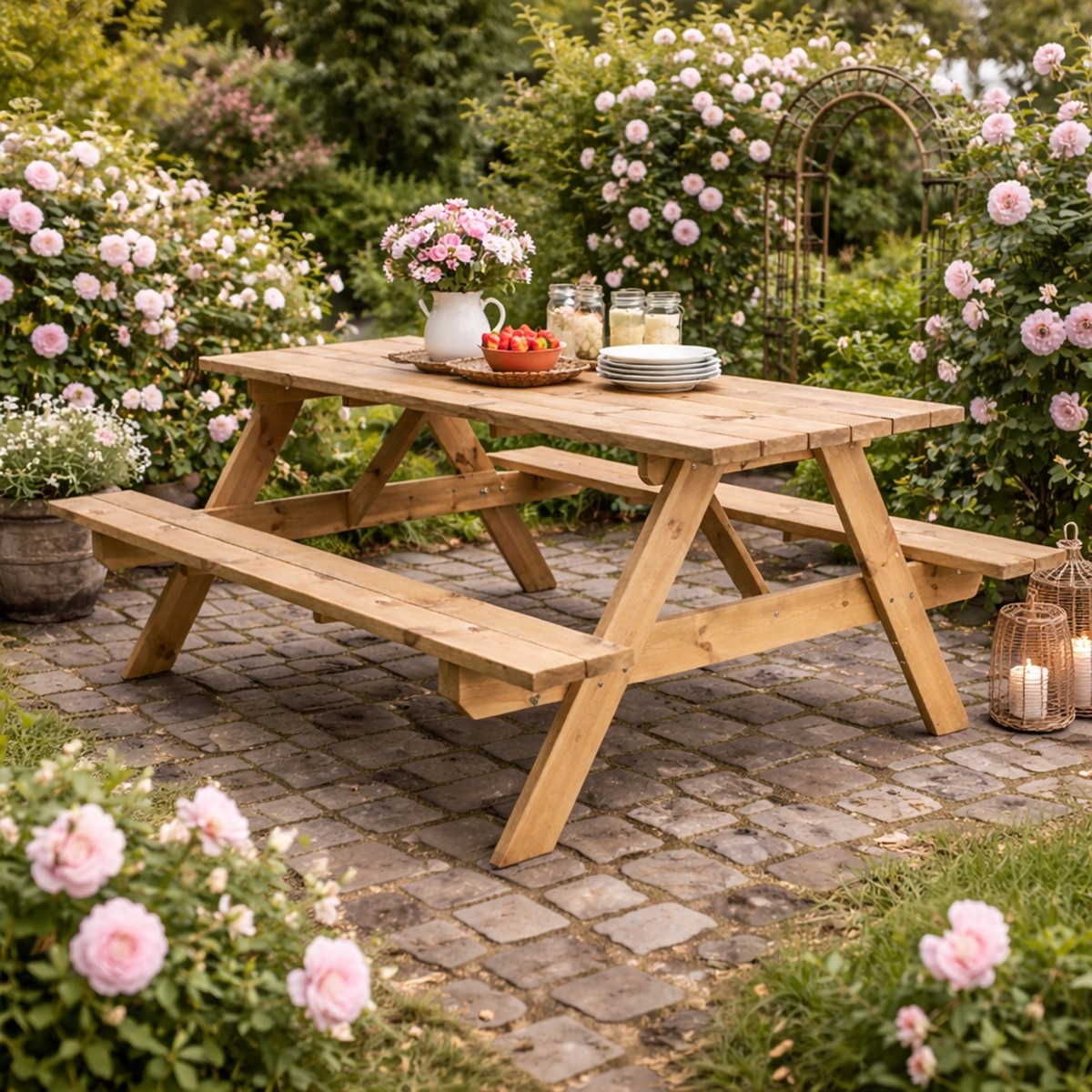 Απολαύστε στιγμές χαλάρωσης στον κήπο σας με ένα στιβαρό Ξύλινο Τραπέζι Πικ-Νικ υψηλών προδιαγραφών. Κατασκευασμένο από επιλεγμένο Σκανδιναβικό ξύλο με πιστοποίηση FSC/PEFC, το τραπέζι διαθέτει εμβάπτιση τρίτης κατηγορίας για μέγιστη προστασία από τις καιρικές συνθήκες.